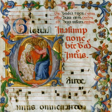 - 중세(450-1450)- 오직 신을 찬양하기 위한 도구로의 예술 그레고리오 성가, 기보법, 계명창, 모테트(다성음악)의 시작, 음유시인 등장